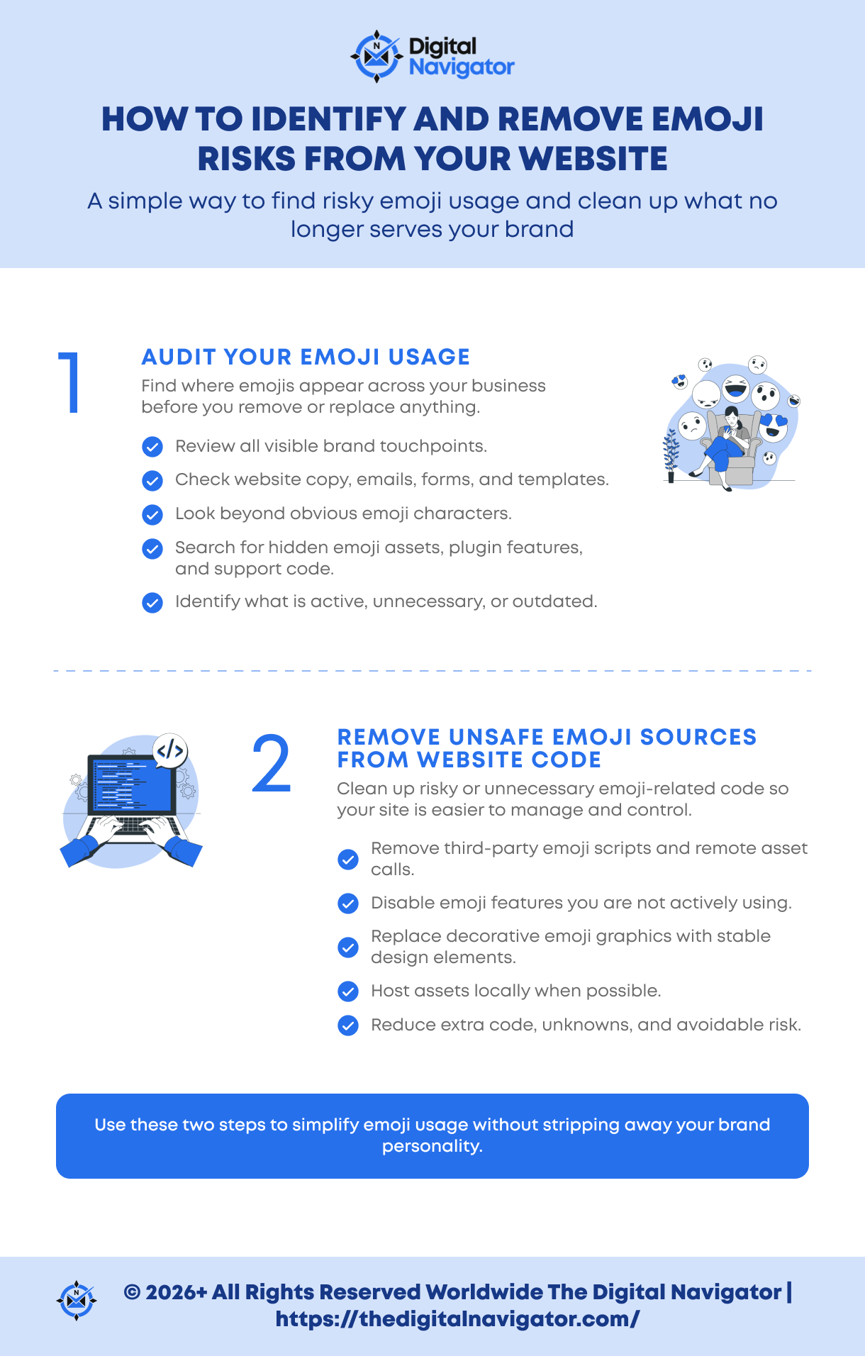 This is where the idea to remove emojis from website code needs a little context. You are not necessarily wiping every emoji from your brand. You are removing the risky, unnecessary, or poorly controlled ways those emojis are being loaded and displayed across your site.